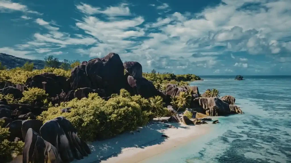 At the iconic beach of Anse Source d’Argent on La Digue you’ll encounter massive, well-rounded granite boulders framing calm, shallow, turquoise waters and silky white sand. seychellesbookings.com+1 These formations are what make the Seychelles landscapes among the most photographed in the world.