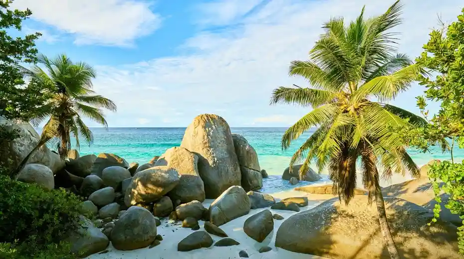 Granite boulders, palm trees & turquoise seas