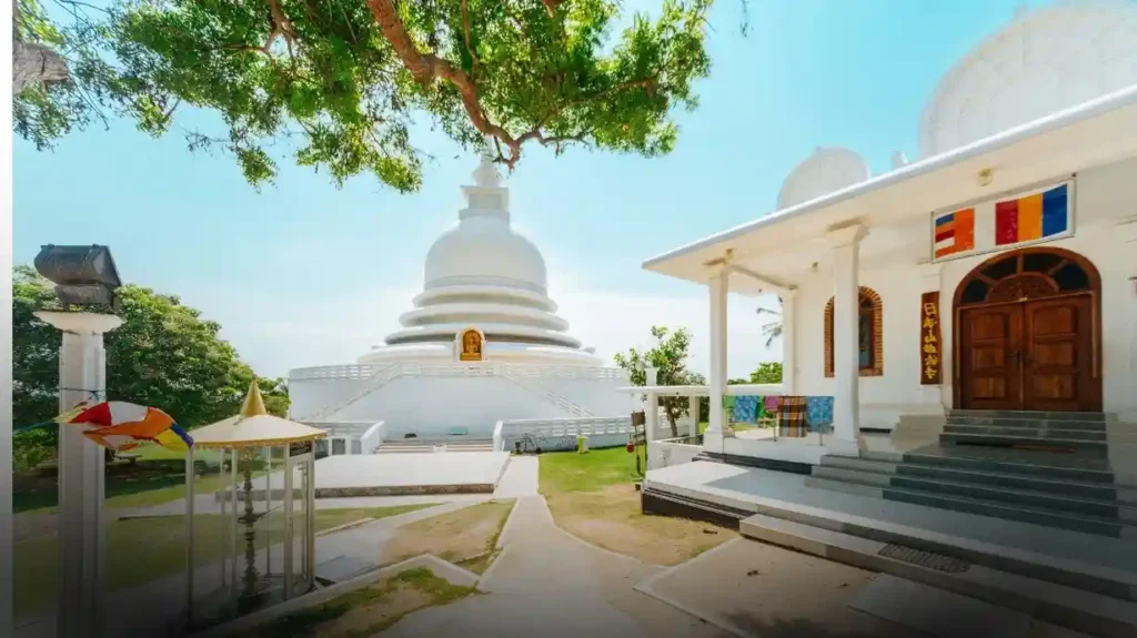 Overlooking the Indian Ocean, the Japanese Peace Pagoda is one of the most serene spots near Unawatuna – relaxed coastal charm near Galle. This white stupa, built by Japanese monks, symbolizes peace and harmony.